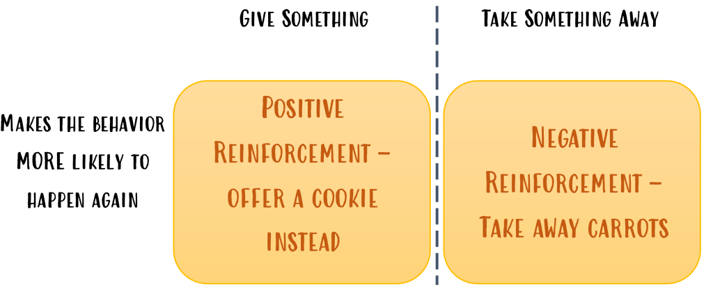 Did you know that there are BOTH positive consequences AND negative consequences? I’m going to guess that you may not have known this. No shame – I had no idea until my extra training in behavior modification! This is similar to the concept of reinforcement, which can be both positive and negative (if you’re interested, you can read about that here).